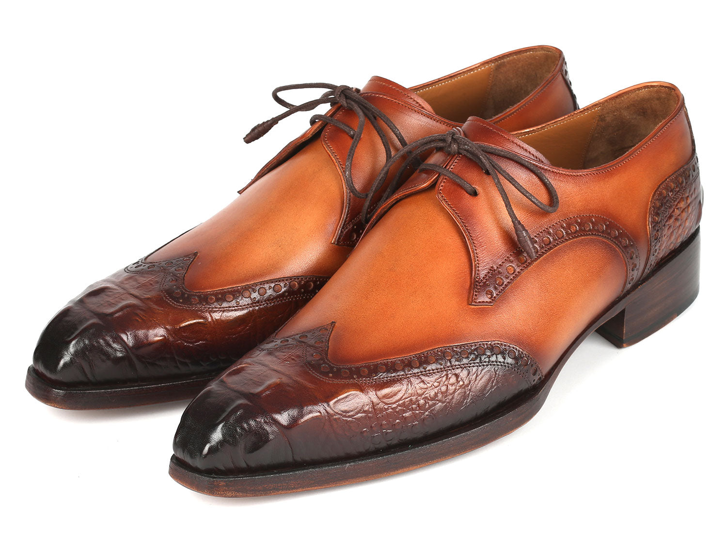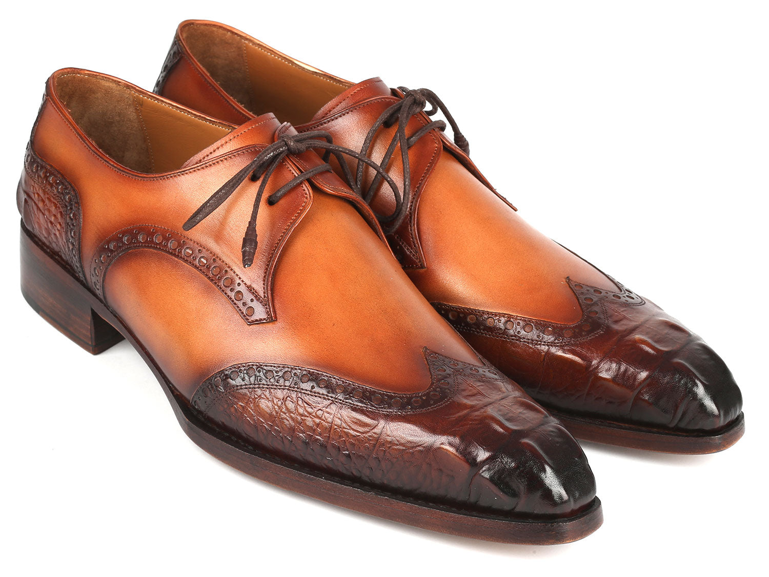- Handmade wingtip derby shoes for men.