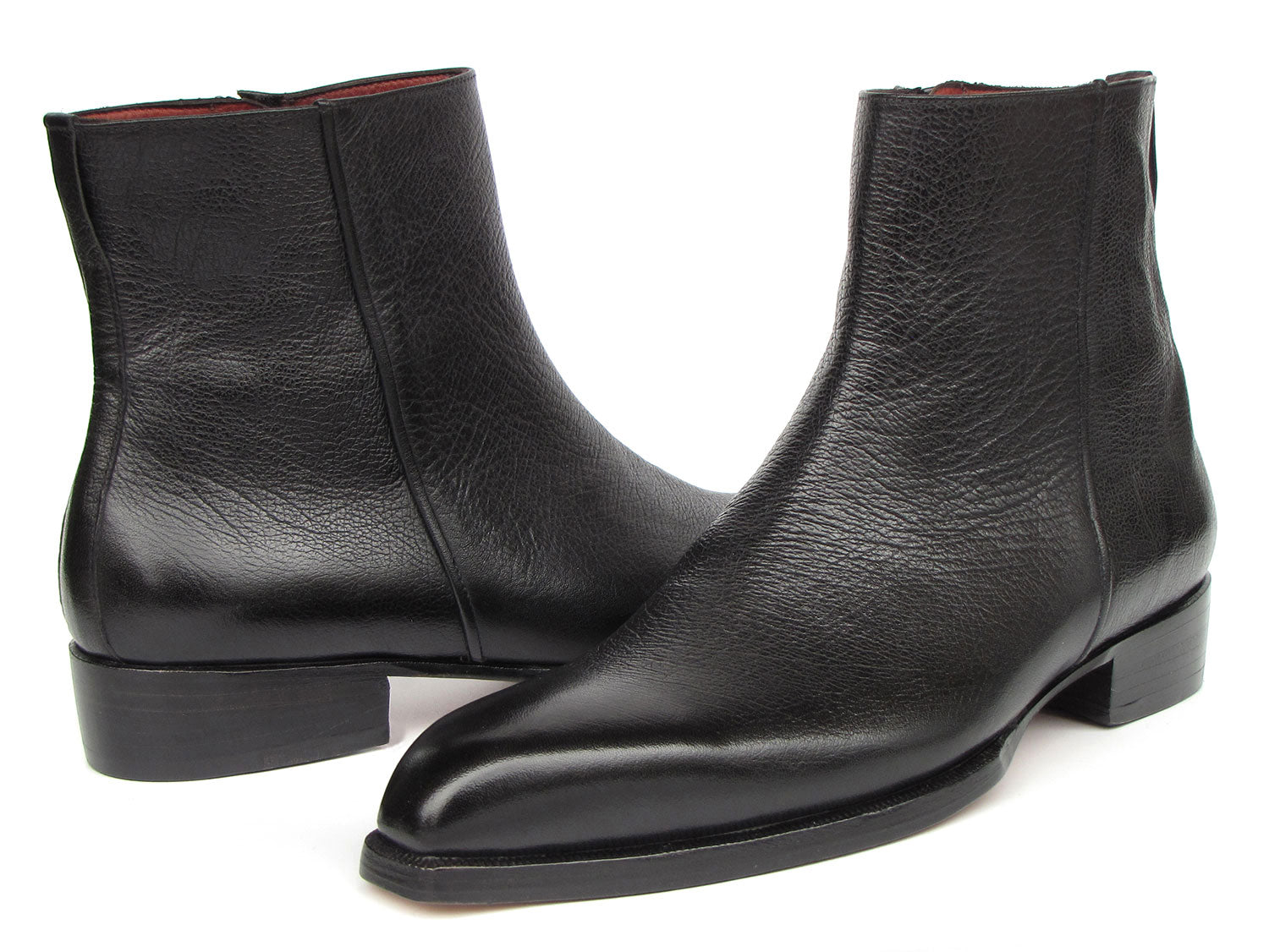 Paul Parkman Men's Black Floater Leather Side Zipper Boots (ID#BT6499-BLK)