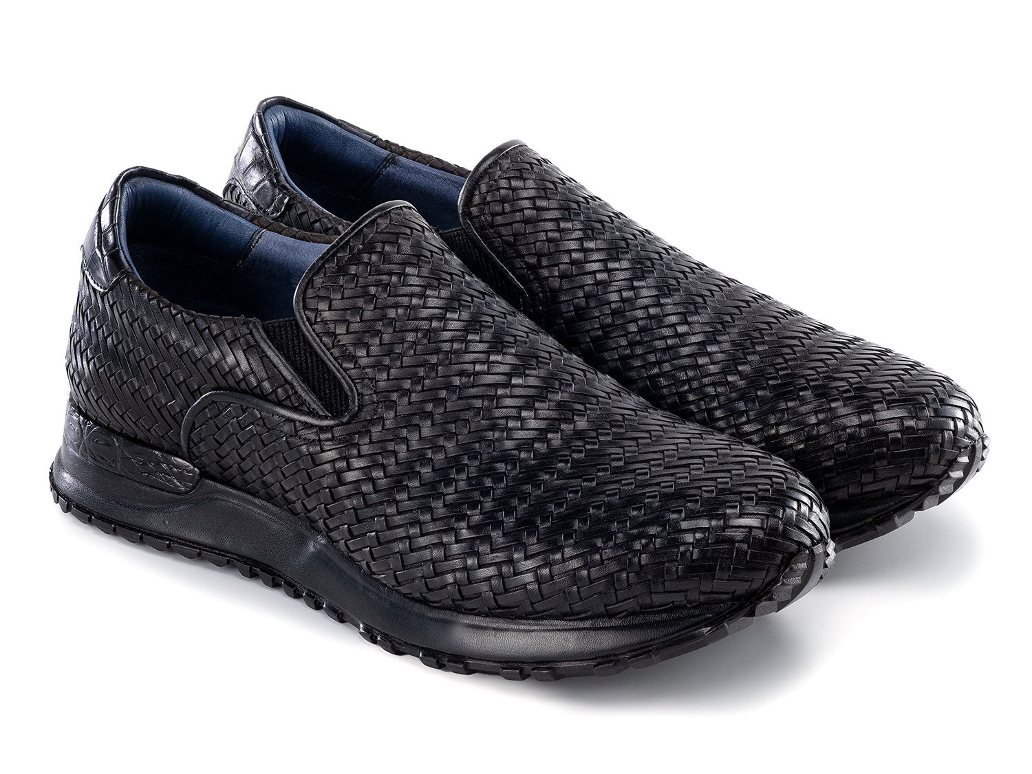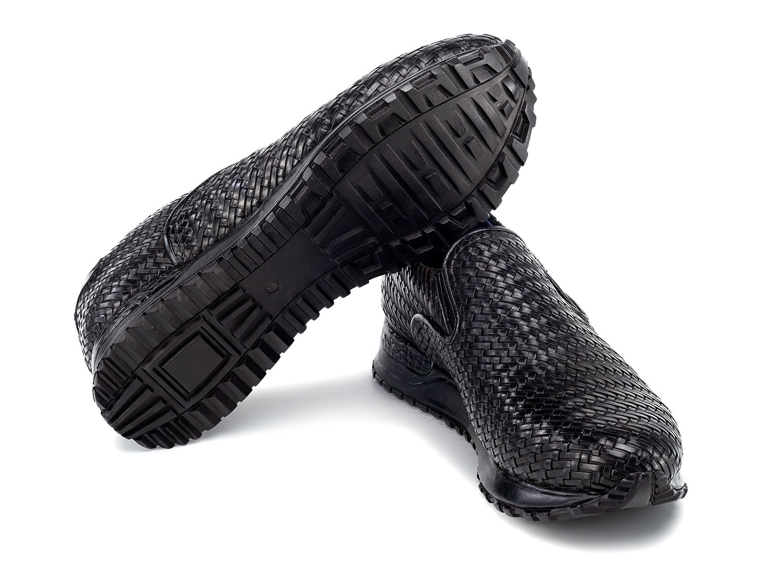 Paul Parkman Men's Black Woven Leather Slip-On Sneakers (ID#LW204BLK)