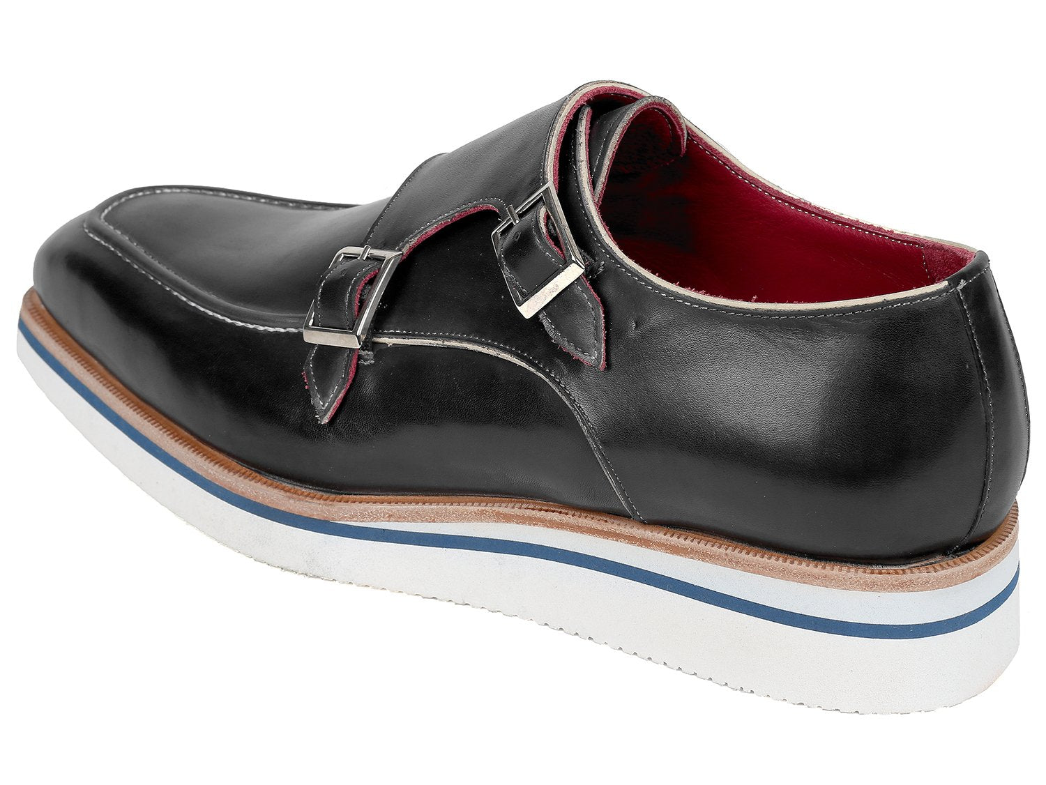 Paul Parkman Men's Smart Casual Monkstrap Shoes Black Leather (ID#189-BLK-LTH)