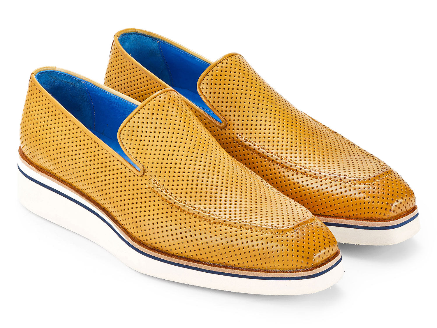 Paul Parkman Men's Smart Casual Perforated Leather Loafers Beige (ID#186-PR-BEJ)