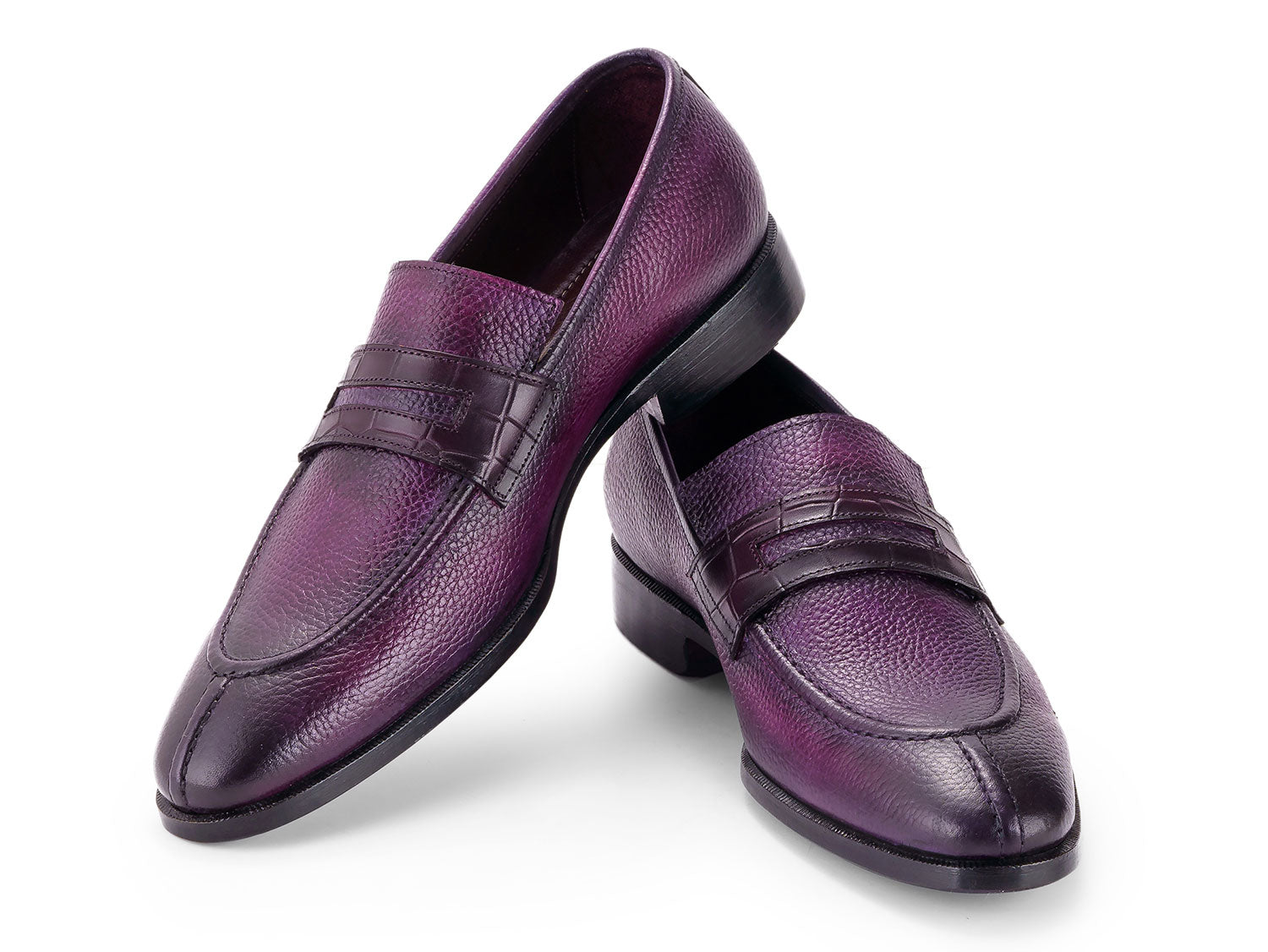 Paul Parkman Men's Split Toe Loafer Shoes Purple (ID#694PR87)